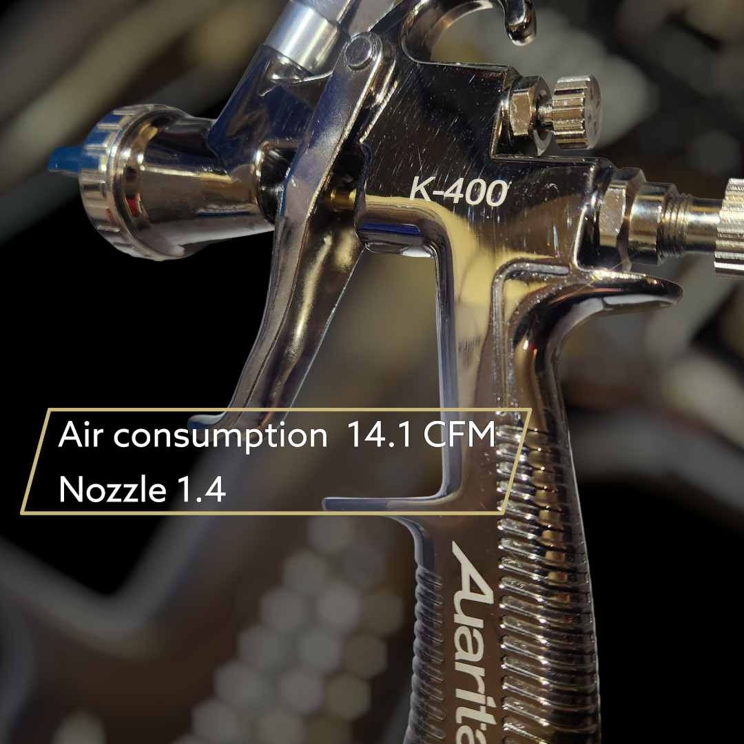 - Serie 400 tecnología HVLP (Alto volumen / Baja presión) ideal para acabados finos, con máximo rendimiento de pintura y mayor control de aplicación